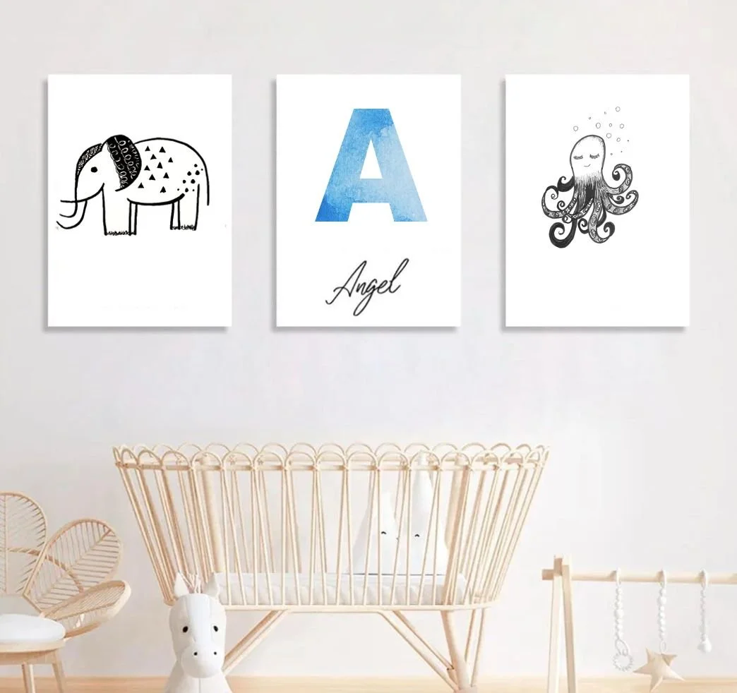 Cadres personnalisés en trois volets avec le prénom de bébé